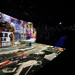 Little expressions of the supernatural and plenty of social commentary. Lightning flashed images of the KKK, the hotel room was filled with shadows of demons, flowers grew at MLK’s feet, the room turned to ice, and demons stretch through the door. I even got to shake the room a la Harry Potter and the Cursed Child. The show of course ends in historical commentary. What have we done since MLK’s death? Huge strides forward and huge strides back. Forever in struggle. Can we fix it? Beautiful show with beautiful people. The rig was 6 Epson 14,000 lumen laser projectors, one for the cyc, one for the hotel room wall, two for the floor- from either side to minimize shadows, and two for the finale where we plastered entire theatre space with historical photos. Playback was a new and exciting experience. I used Pixera for the first time. I was impressed by the capabilities.