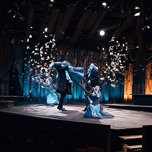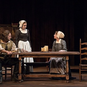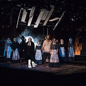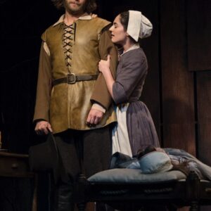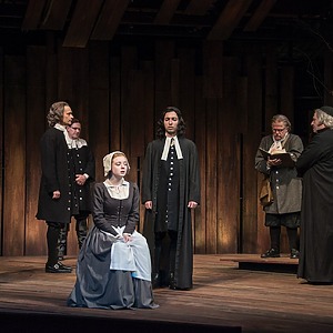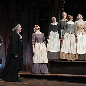 Inspired, in part, by the 2015 film The Witch, this production interweaves tension and the threat of supernatural throughout.  The music was specifically modern and pulsing but hearkens back to colonial times. Transitions combine music and sound effects for an emotional and driving lift to the action. An intimate and powerful production of a classic script.